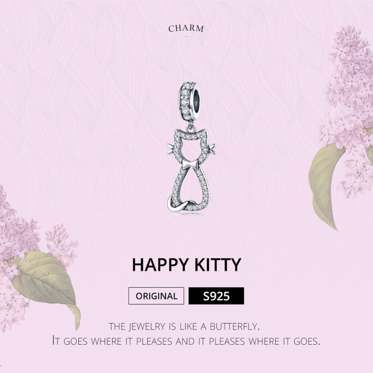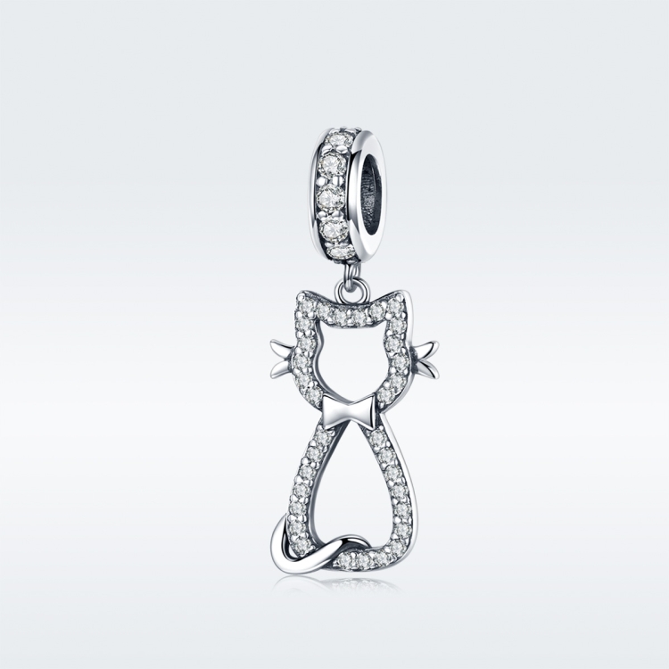 S925 Sterling Silver Pendant Diy Bracelet Accessories Zircon Cat Pendant Jewelry