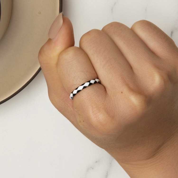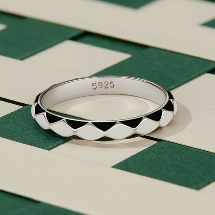 S925 Sterling Silver Personalized Black White Diamond Texture Ring Hand Decoration