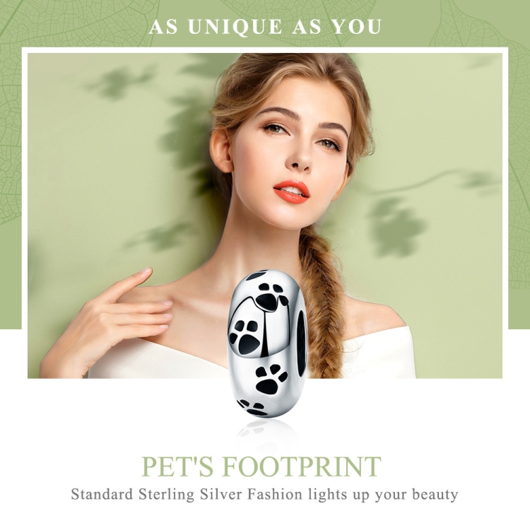 S925 Sterling Silver Pet Imprint Diamond Beads DIY Bracelet Accessory