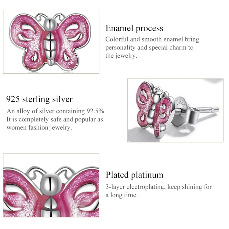 S925 Sterling Silver Pink Butterfly Ear Studs Women Earrings