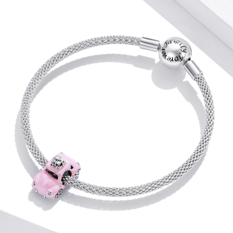 S925 Sterling Silver Pink Car Beads DIY Bracelet Necklace Accessories