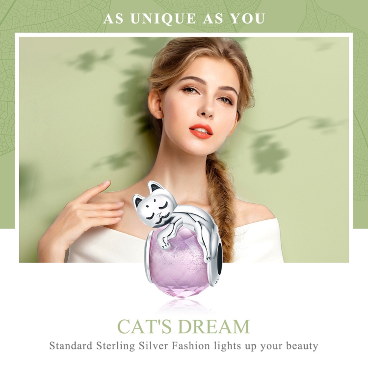 S925 Sterling Silver Pink Crystal Loose Beads Cute Cat DIY Bracelet Accessory