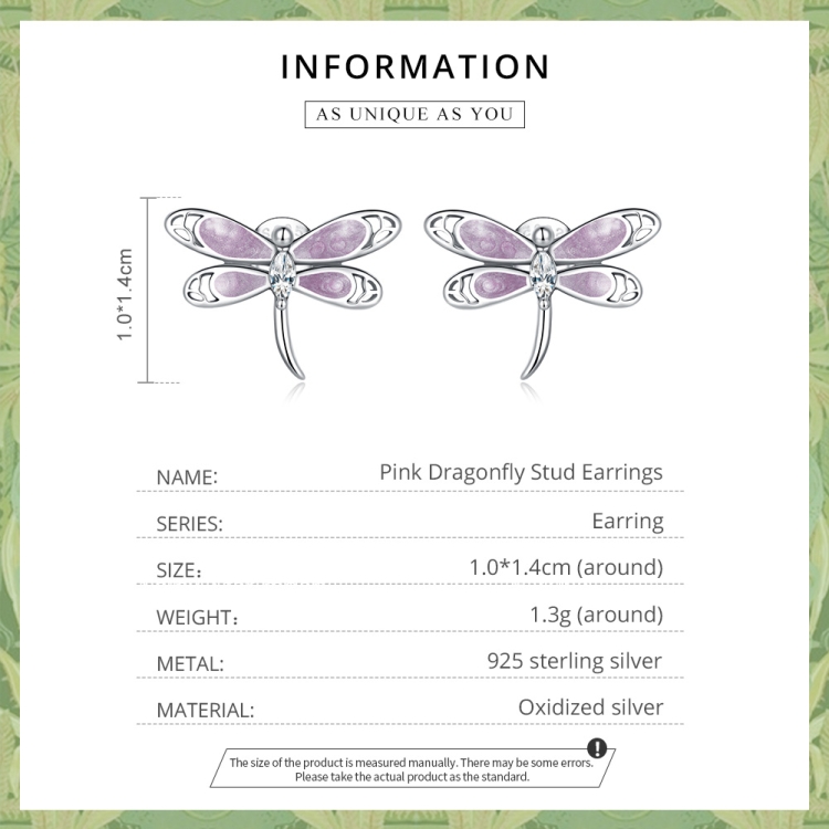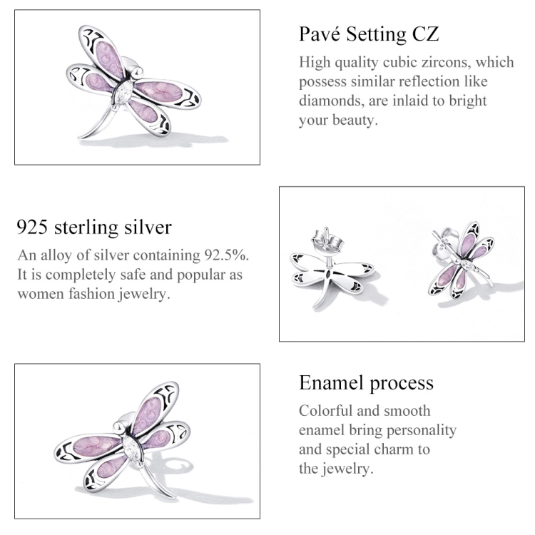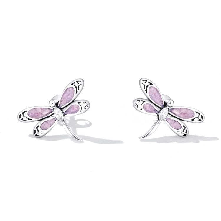 S925 Sterling Silver Pink Dragonfly Ear Stud Women Earrings