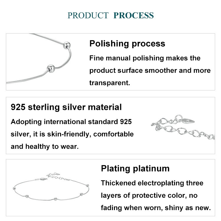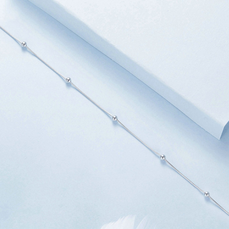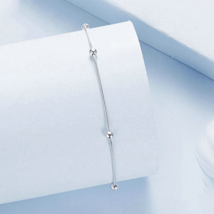 S925 Sterling Silver Plated Platinum Snake Bone Beads Thin Anklet