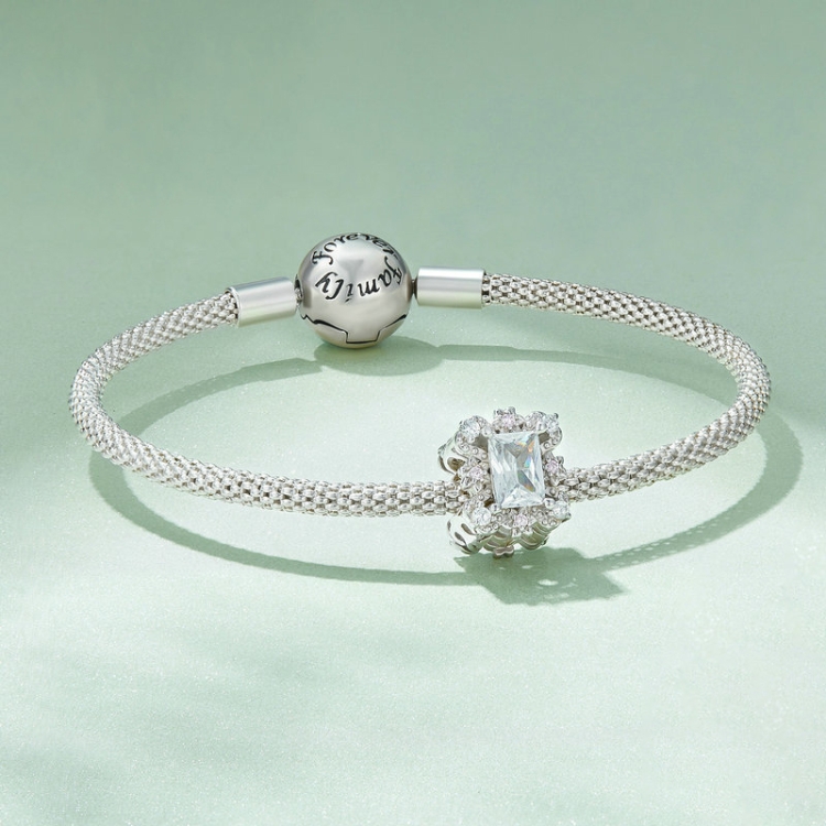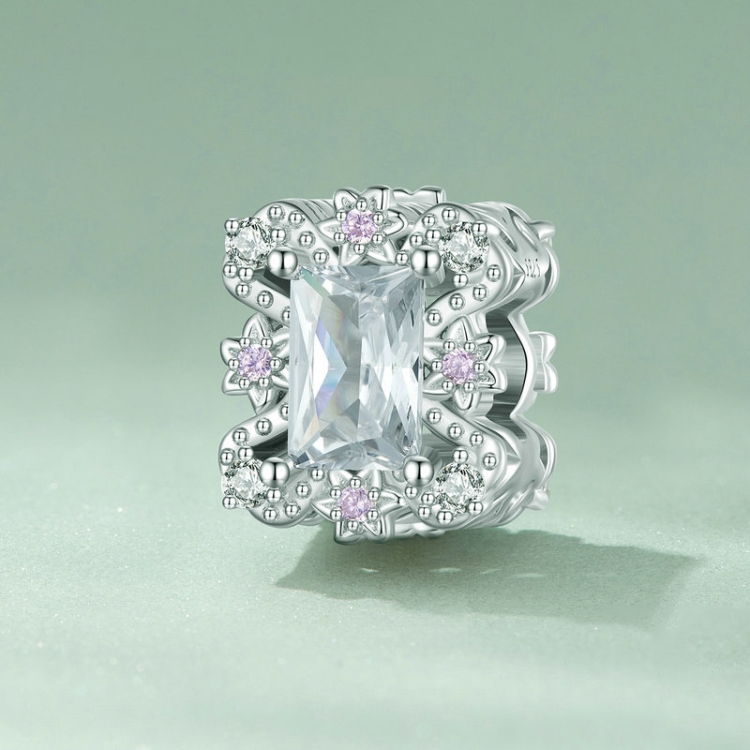 S925 Sterling Silver Plated White Gold Zirconia Flower Bracelet Beads