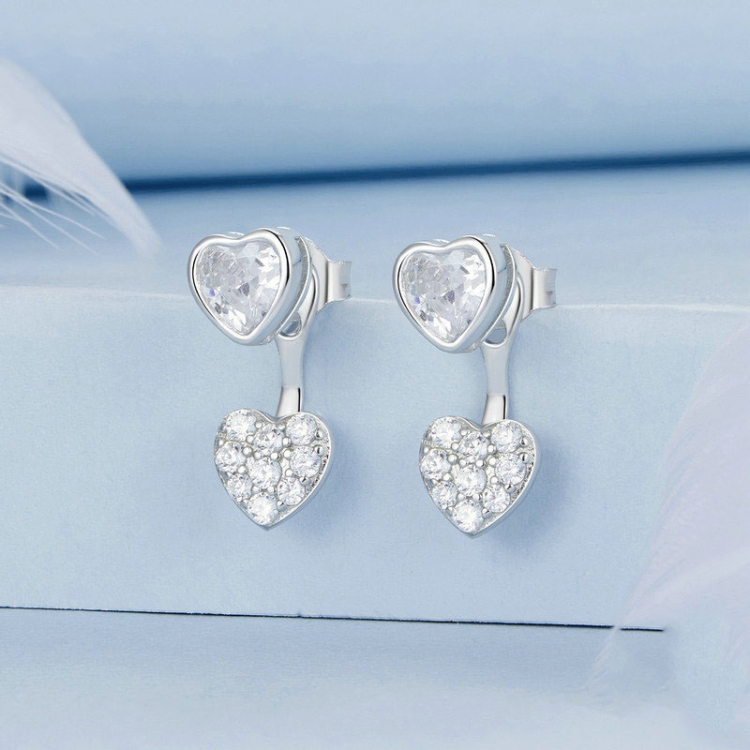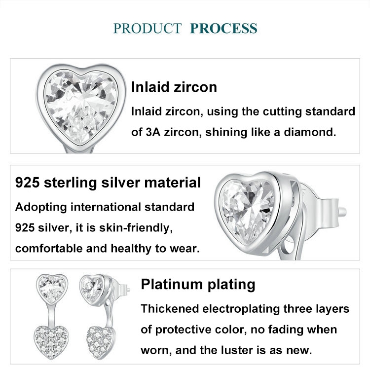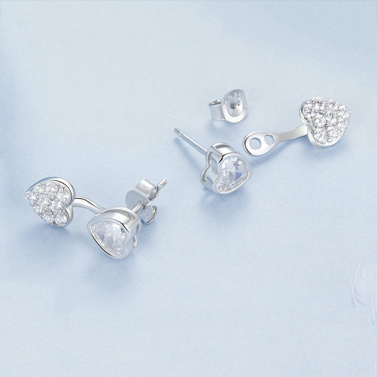 S925 Sterling Silver Plated With Platinum And Zircon Heart Earrings
