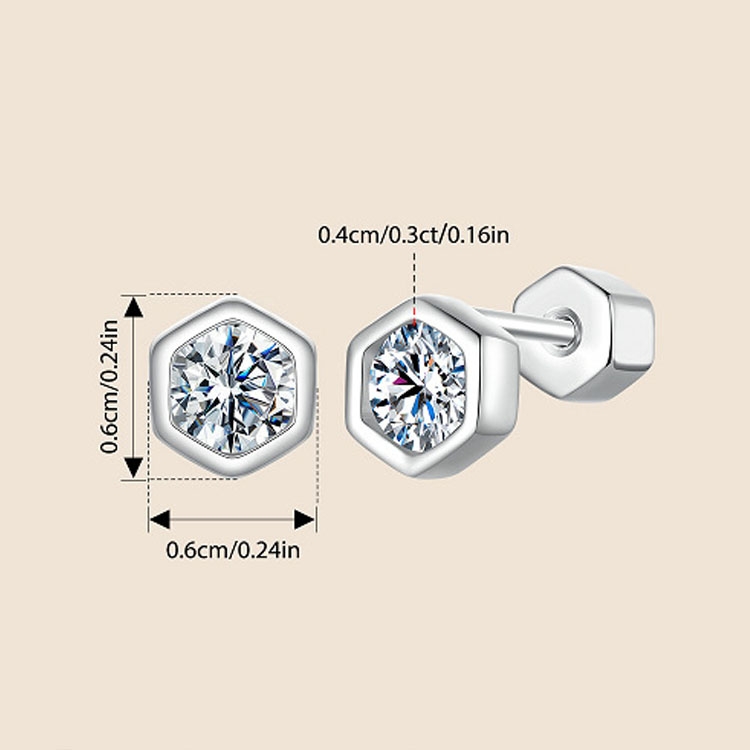 6. Size: height and width: 0.6cm; moissanite: 0.4cm/0.3ct