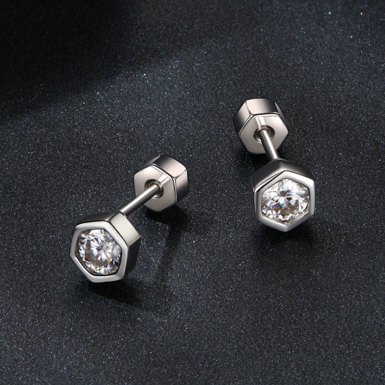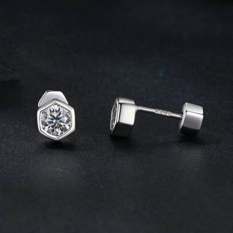 S925 Sterling Silver Plated With Platinum Shining Moissanite Hexagonal Earrings
