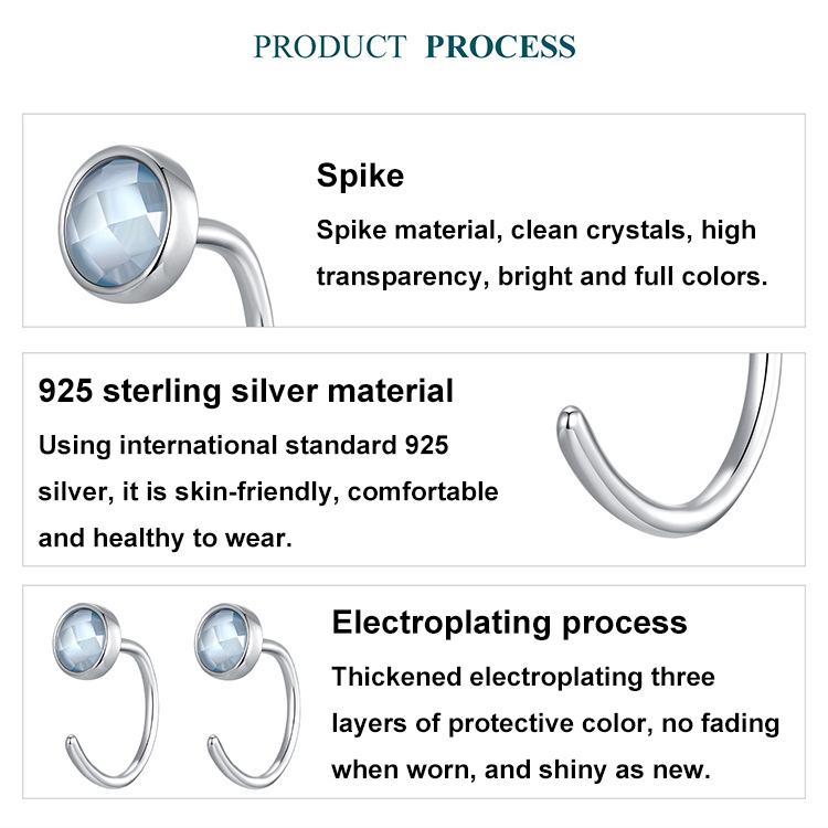 S925 Sterling Silver Platinum-Plated Blue Spike Ear Hook