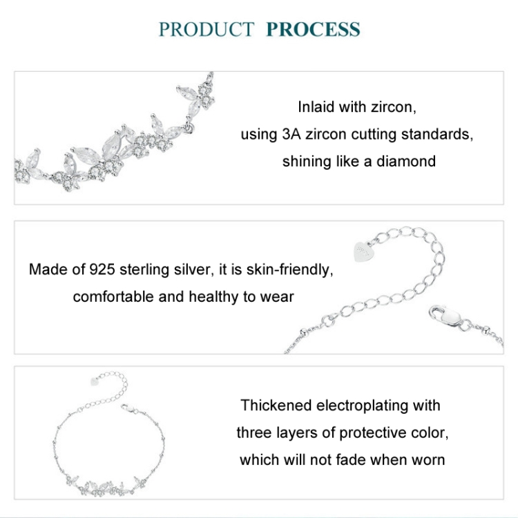 S925 Sterling Silver Platinum-plated Butterfly Flying Stitching Bracelet