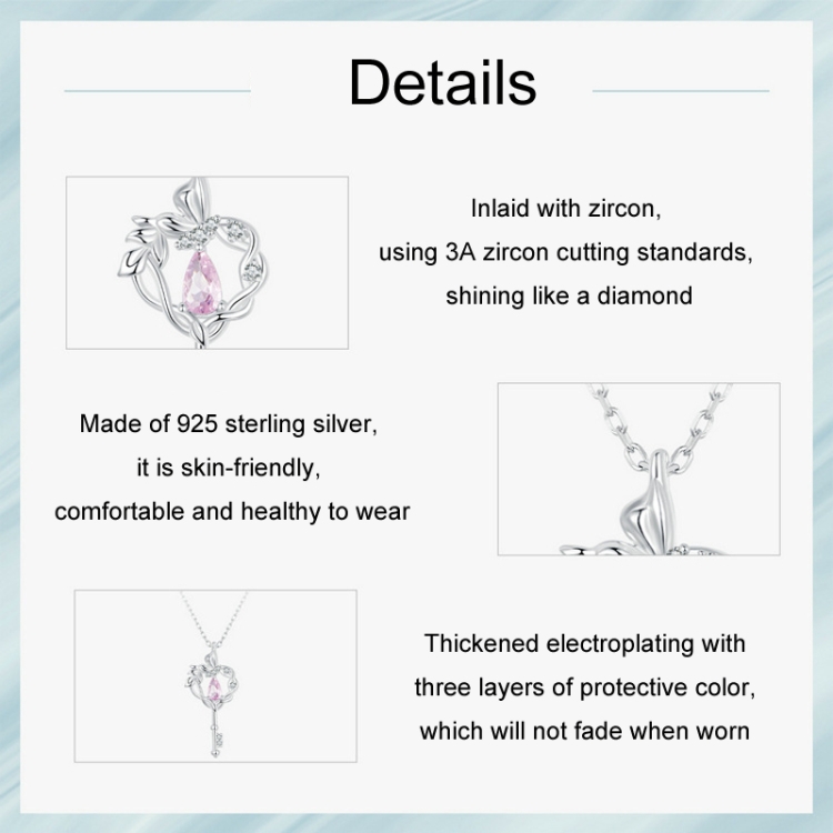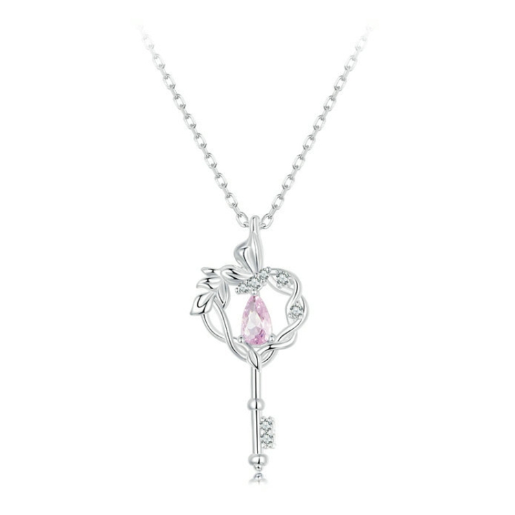 S925 Sterling Silver Platinum-plated Butterfly Vine Love Key Necklace