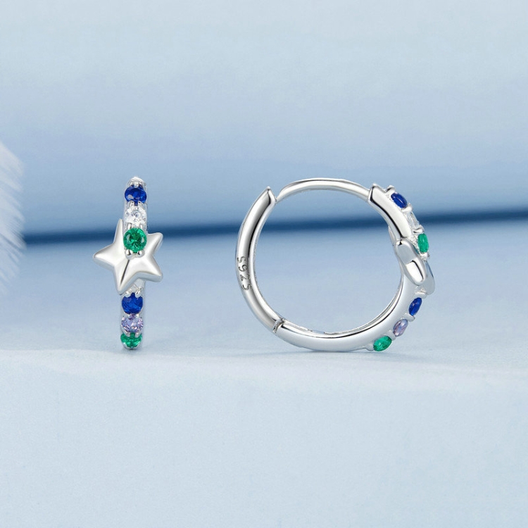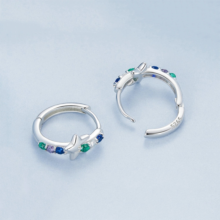 S925 Sterling Silver Platinum-plated Colorful Starlight Ear Clip Earrings