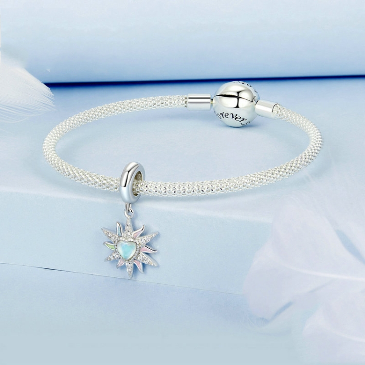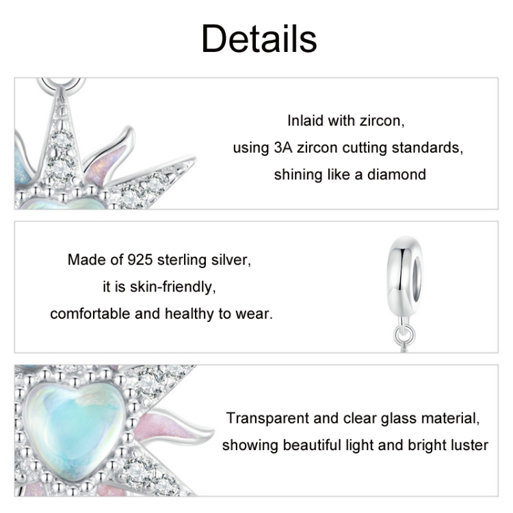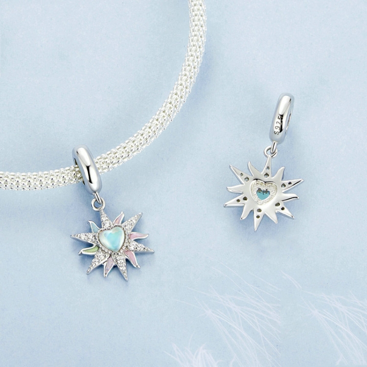 S925 Sterling Silver Platinum Plated Colorful Sunshine Sun DIY Pendant Beads