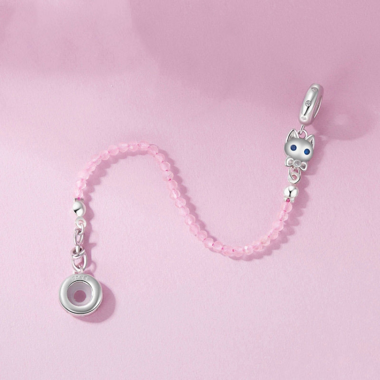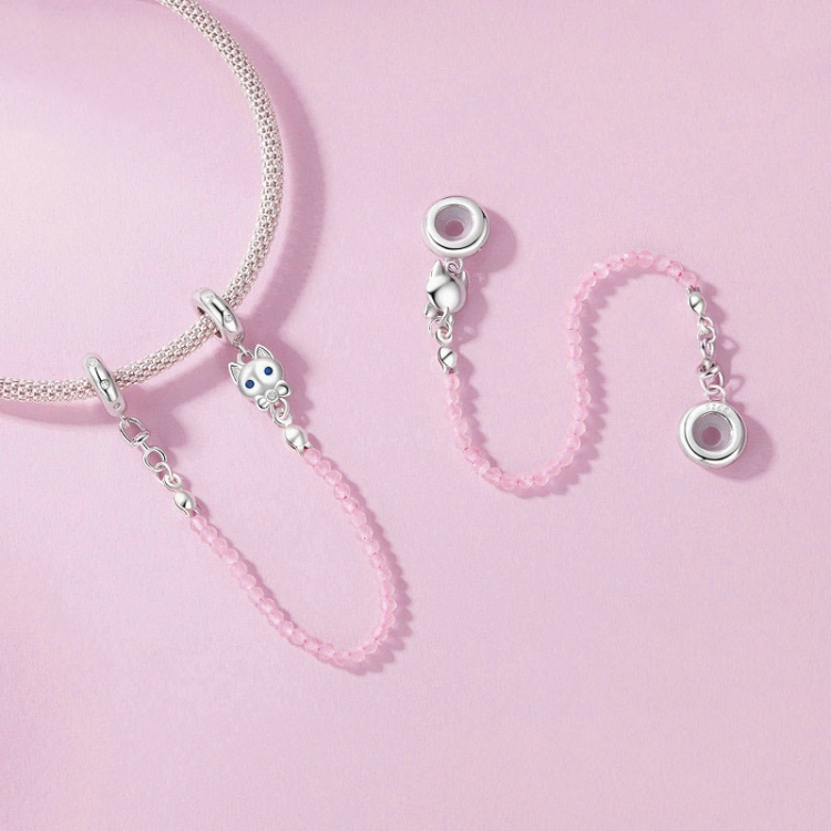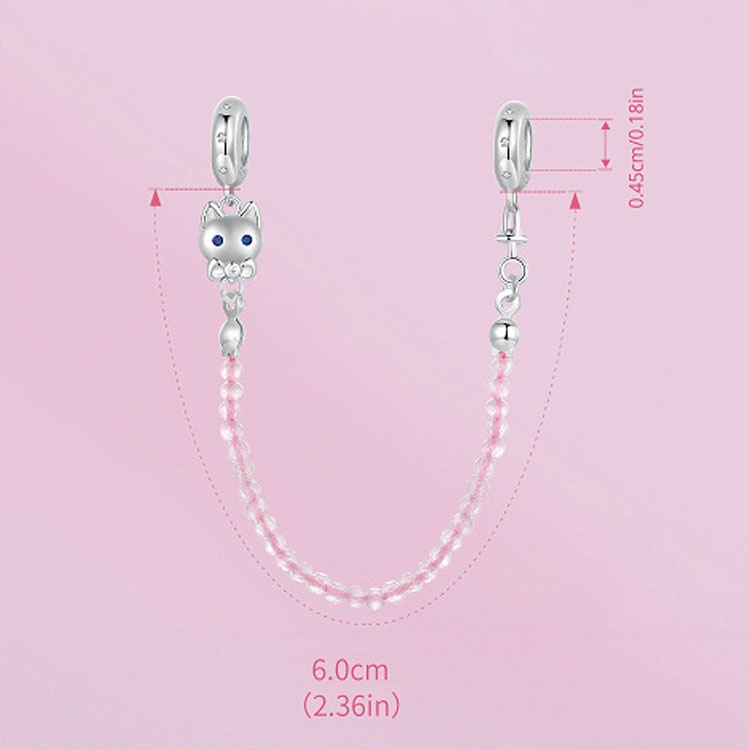 S925 Sterling Silver Platinum Plated Cute Cat Safety Chain Jewelry Pendants