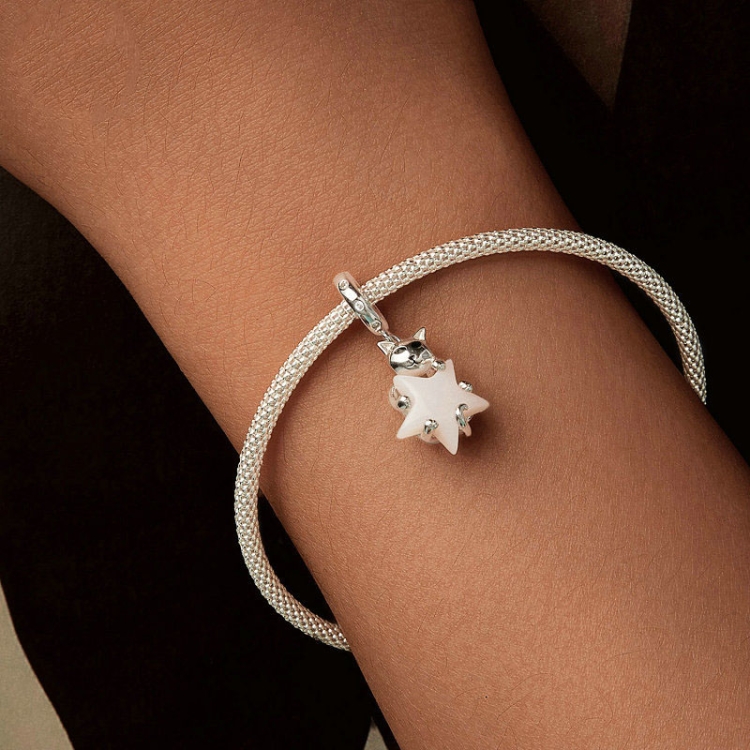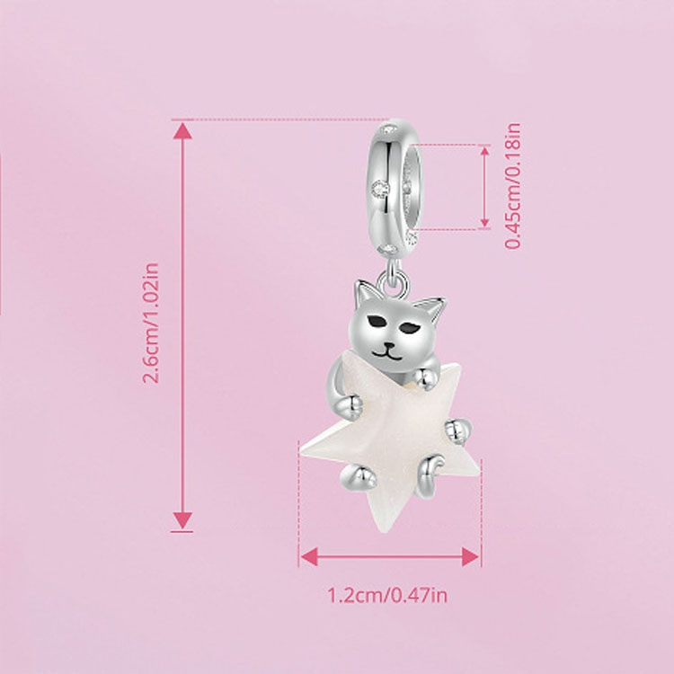 S925 Sterling Silver Platinum Plated Cute Cat Star Luminous Pendant