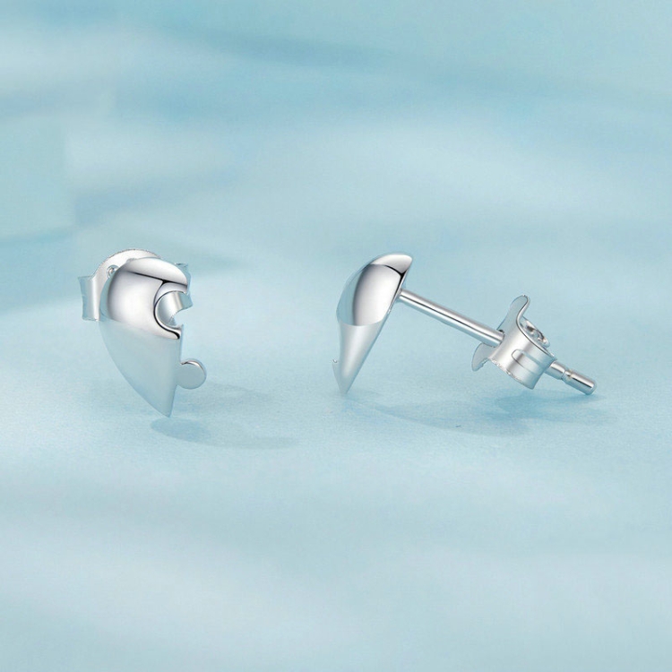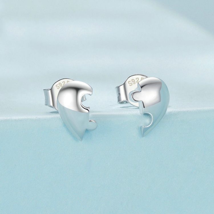 S925 Sterling Silver Platinum-plated Heart-shaped Puzzle Earrings