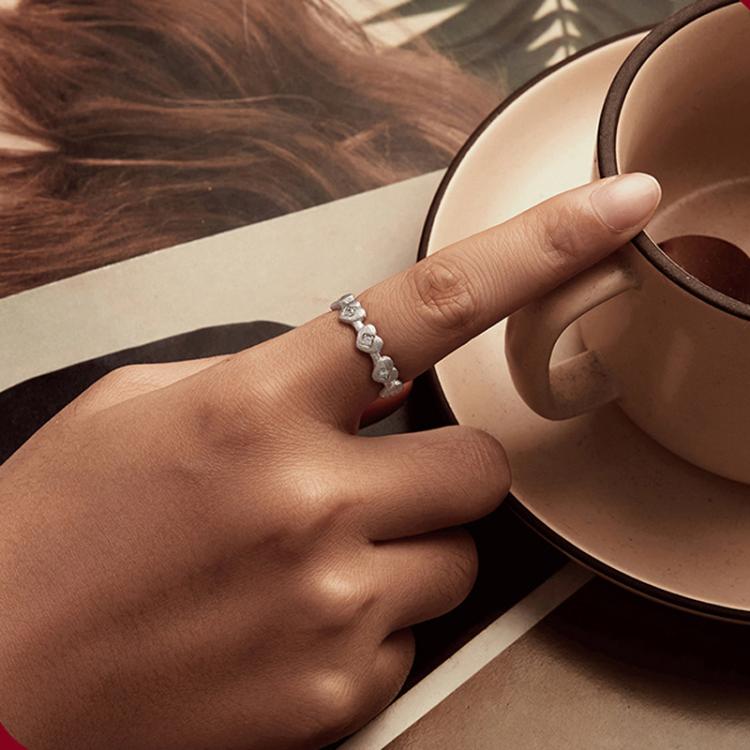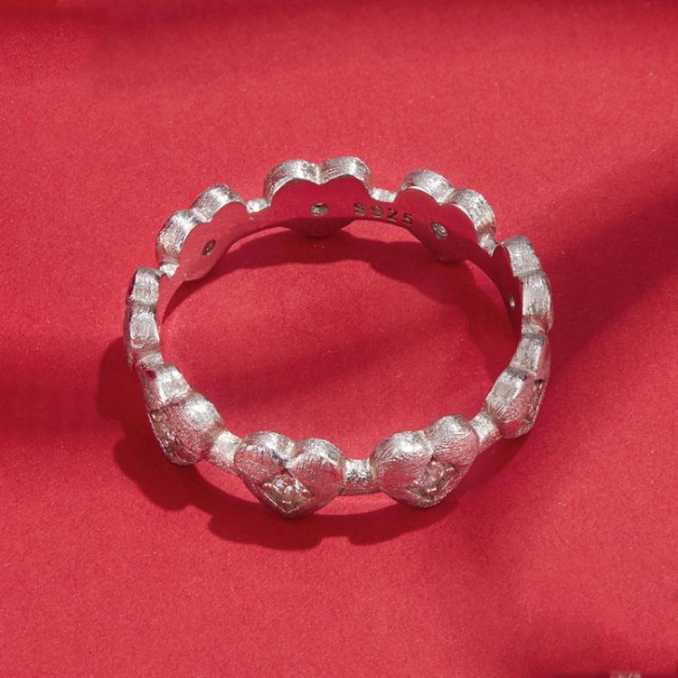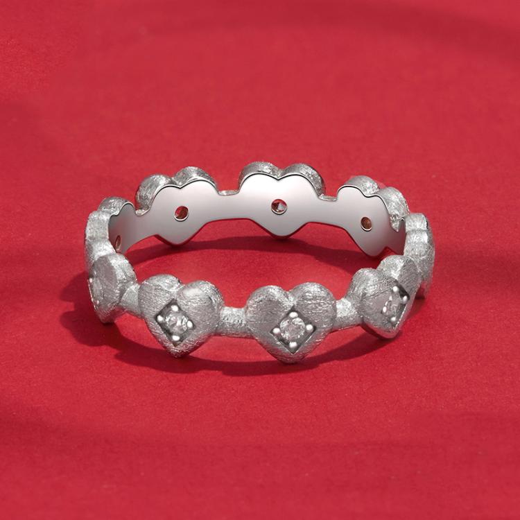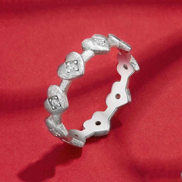 S925 Sterling Silver Platinum-plated Heart-shaped Ring