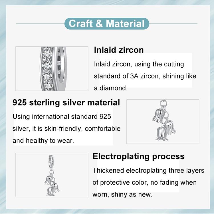 S925 Sterling Silver Platinum-Plated Lily of the Valley Bracelet Pendant Beads