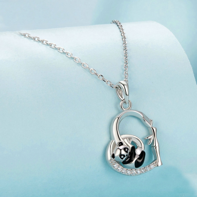 S925 Sterling Silver Platinum Plated Love Panda Necklace