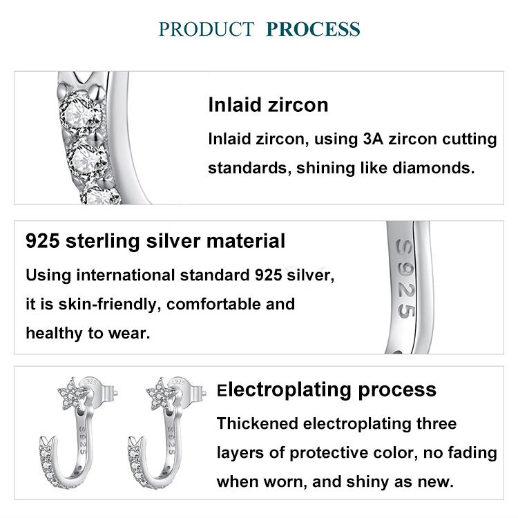 S925 Sterling Silver Platinum-Plated Meteor Earrings Star Earrings