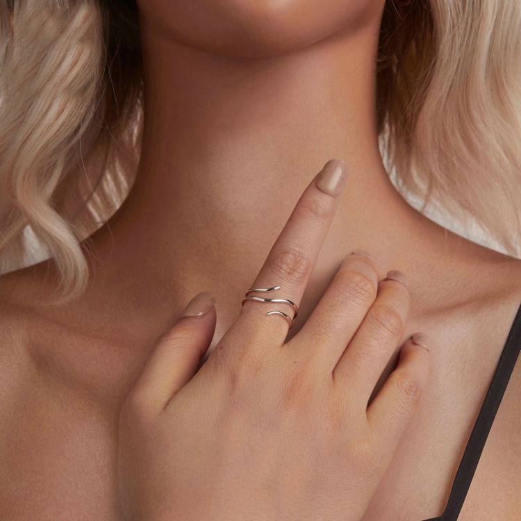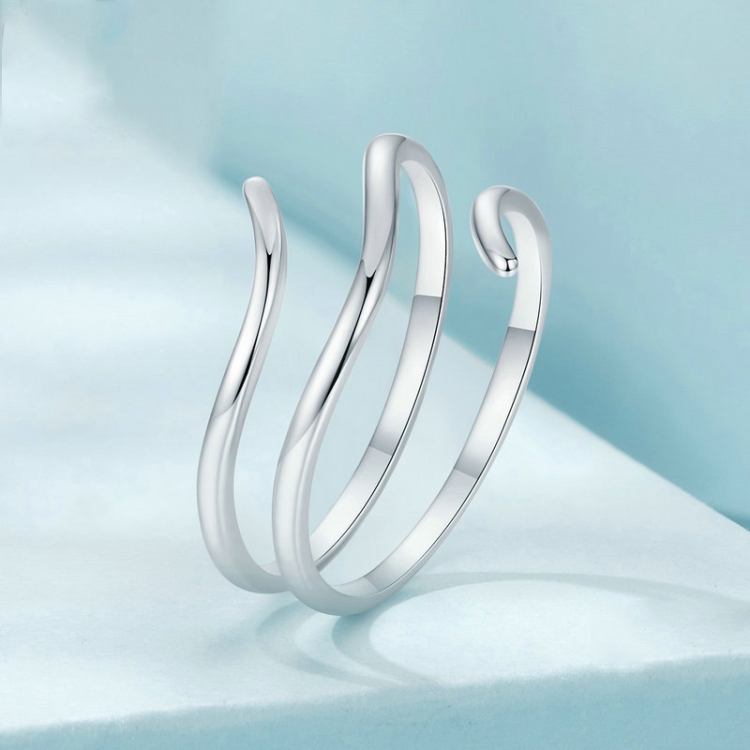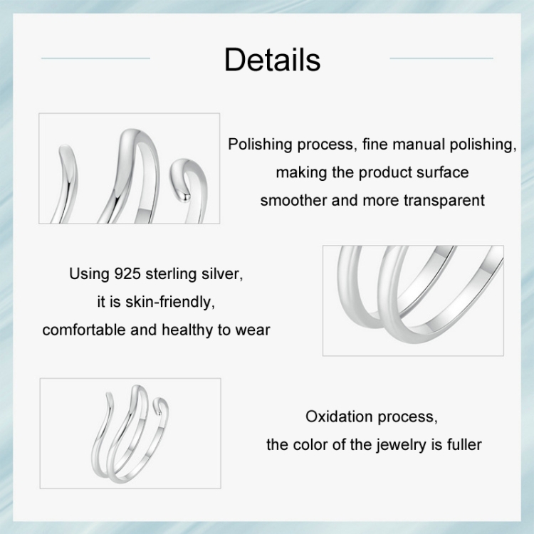 S925 Sterling Silver Platinum-plated Multi-layered Wrap-around Open Ring