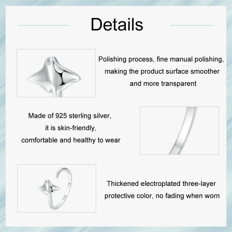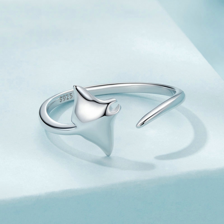 S925 Sterling Silver Platinum-Plated Ocean Manta Ray Adjustable Open Ring