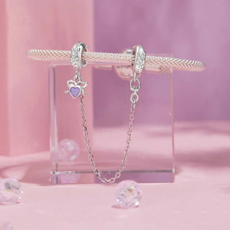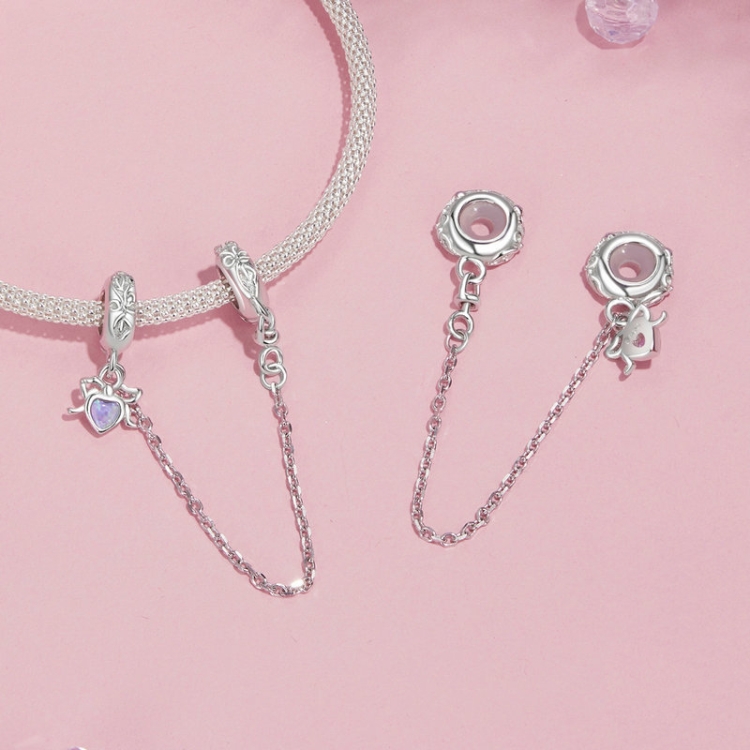 S925 Sterling Silver Platinum-plated Opal Bow Safety Chain