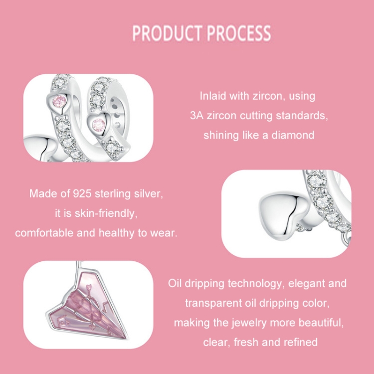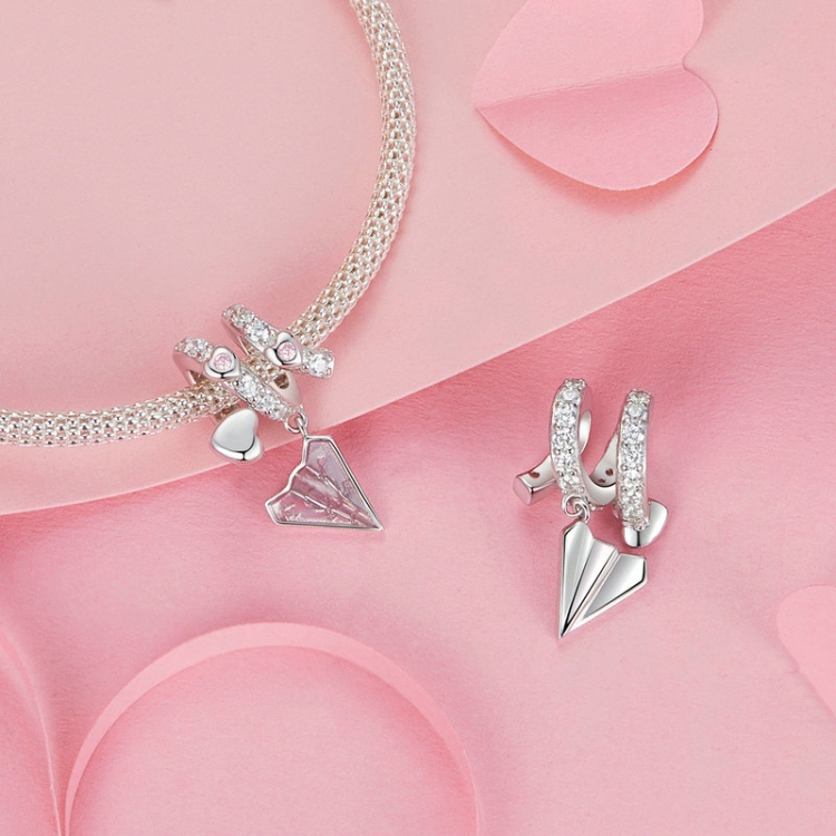 S925 Sterling Silver Platinum Plated Paper Airplane Love Letter Pendant DIY Bead