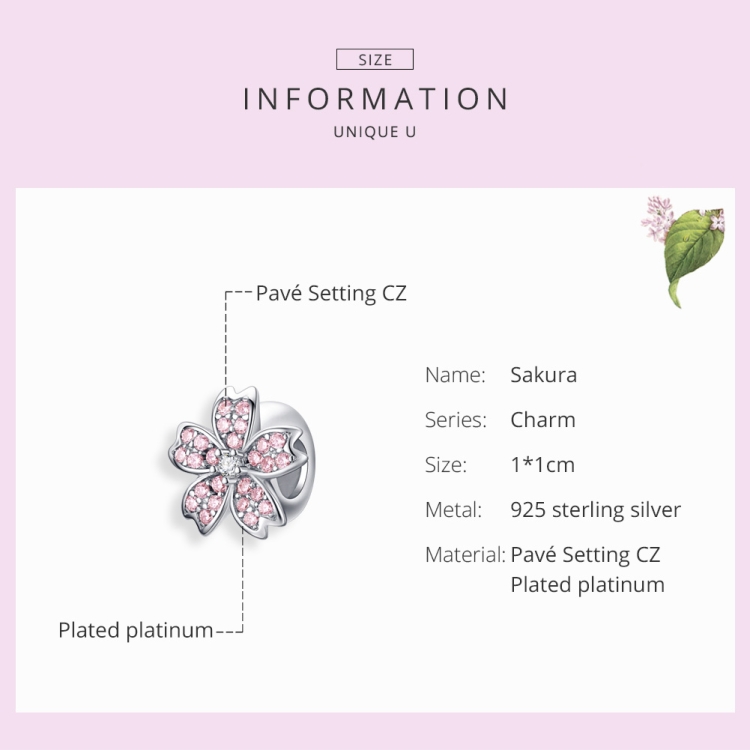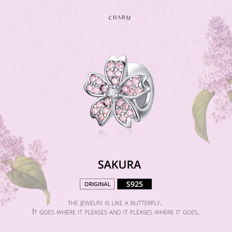 S925 Sterling Silver Platinum Plated Pink Flower Loose Beads DIY Bracelet Accessories