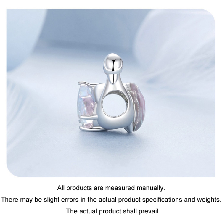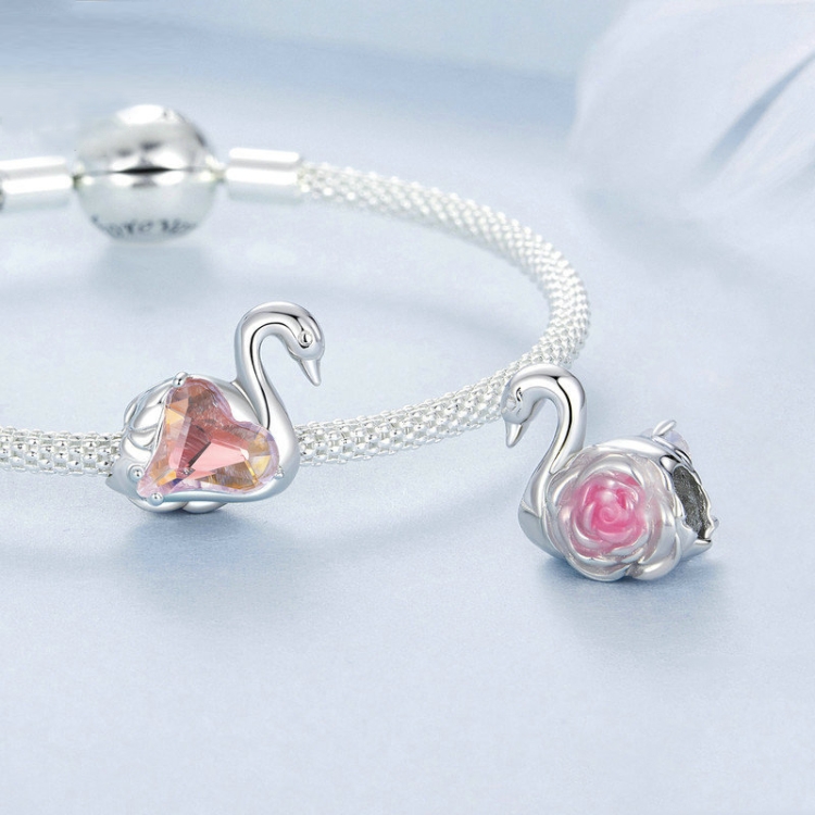 S925 Sterling Silver Platinum-plated Pink Swan Rose DIY Beads