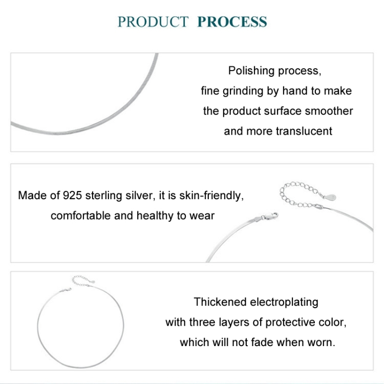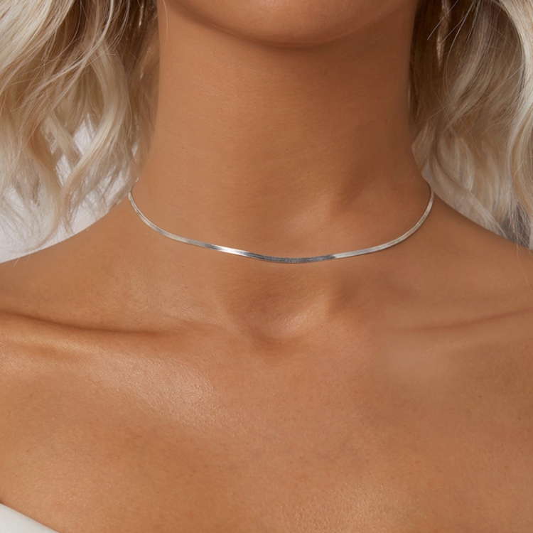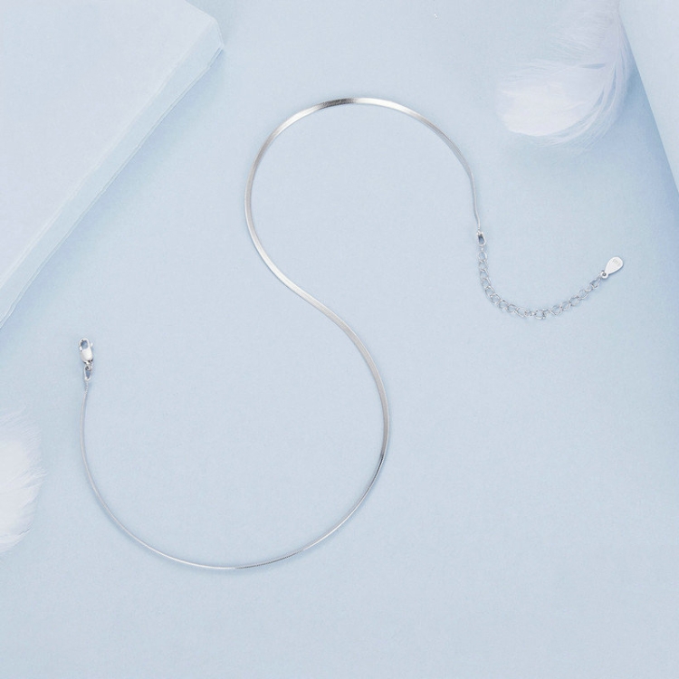 S925 Sterling Silver Platinum Plated Snake Bone Chain Basic Necklace