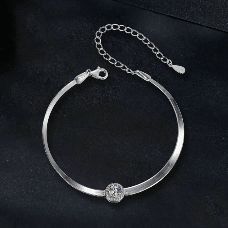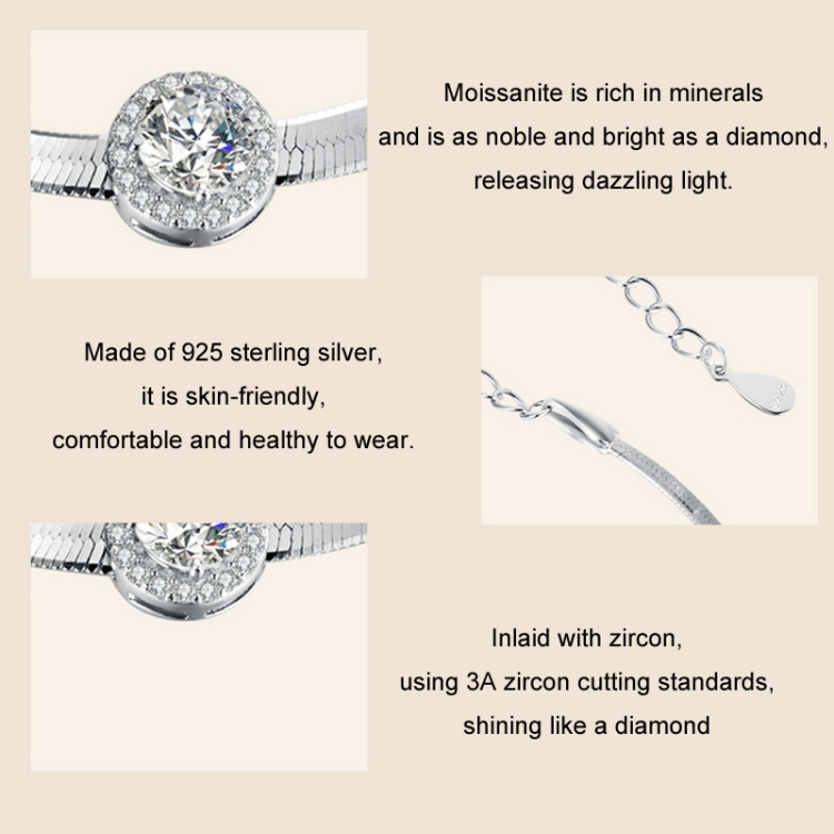 S925 Sterling Silver Platinum Plated Snake Bone Moissanite Bracelet