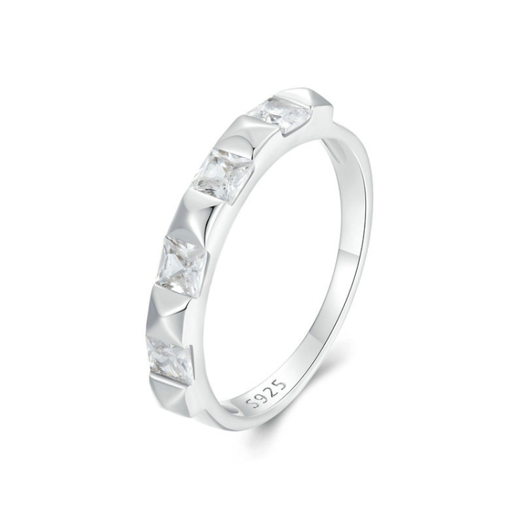 S925 Sterling Silver Platinum Plated Sparkling Simple Rivet Ring