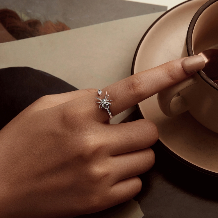 S925 Sterling Silver Platinum-plated Spider Adjustable Open Ring