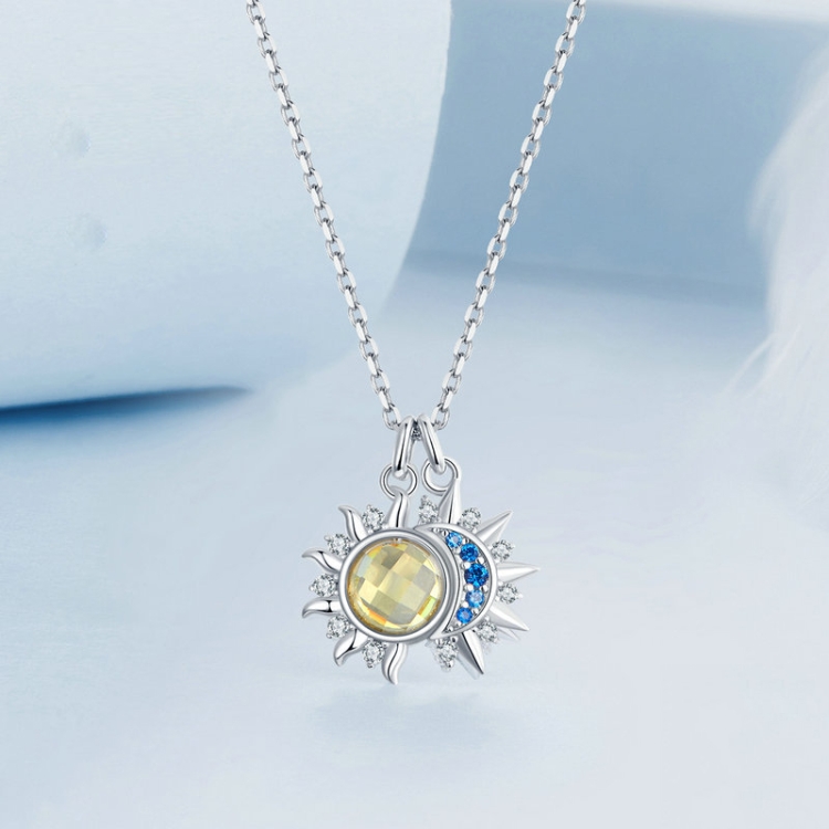 S925 Sterling Silver Platinum Plated Sun Moon and Stars Necklace