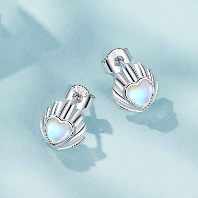 S925 Sterling Silver Platinum-plated Three-dimensional Shell Moonstone Earrings