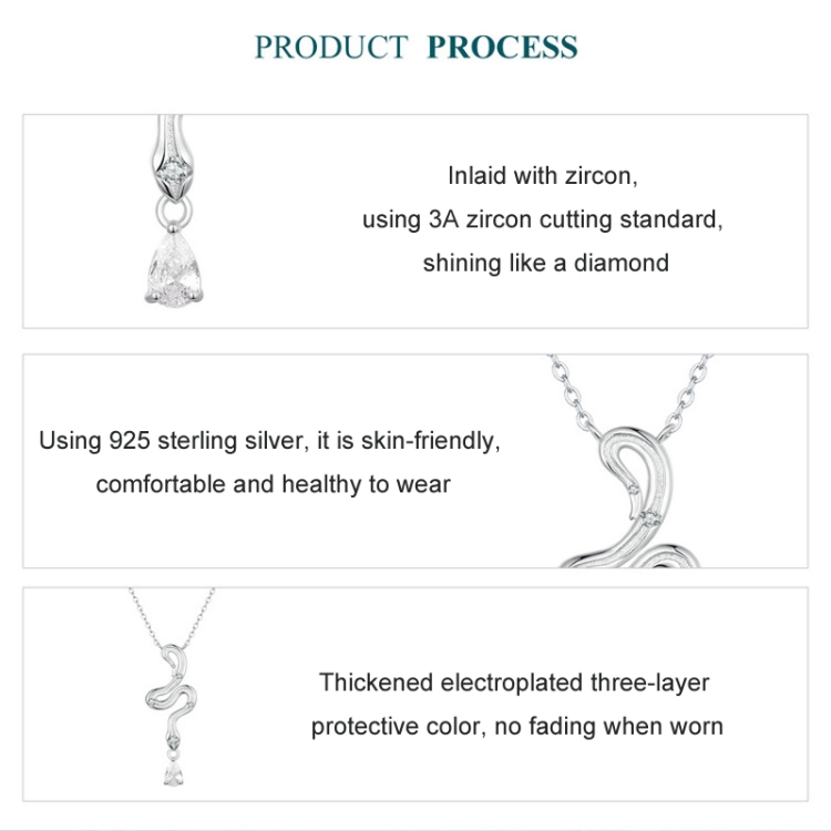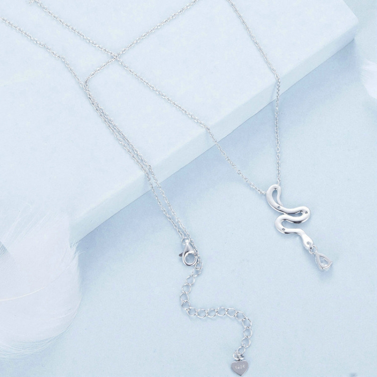 S925 Sterling Silver Platinum-plated Vintage Snake Drop Necklace