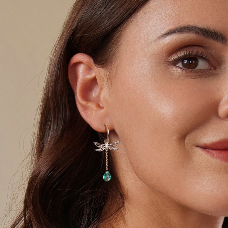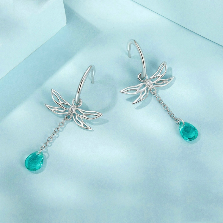 S925 Sterling Silver Platinum Plated Zircon Dragonfly Tassel Stud Earrings
