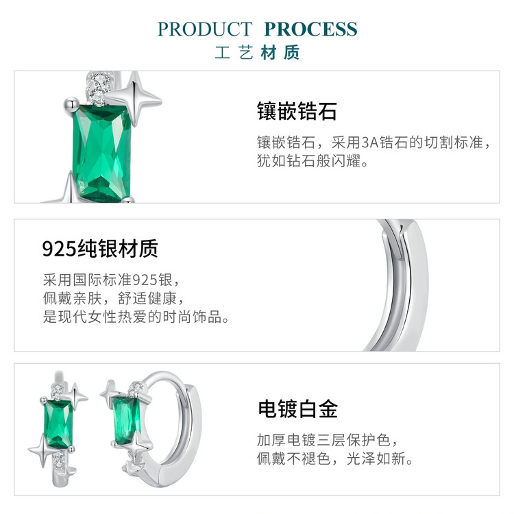 S925 Sterling Silver Platinum-plated Zircon Emerald Shining Earrings