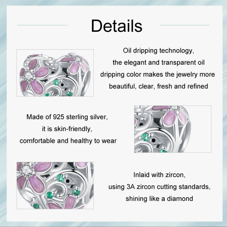 Be the first to review “S925 Sterling Silver Platinum-plated Zircon Heart-shaped Flower Vine DIY Beads”