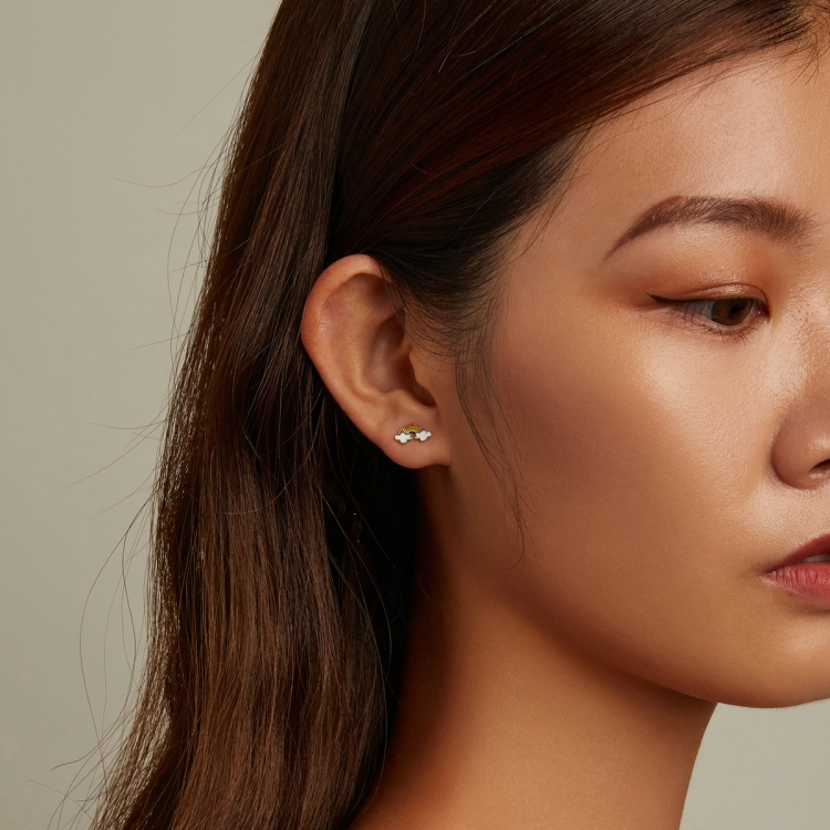 S925 Sterling Silver Rainbow Cloud Ear Stud Women Earrings