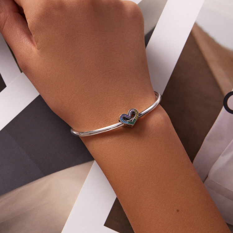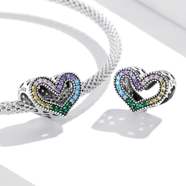 S925 Sterling Silver Rainbow Heart Beads DIY Bracelet Necklace Accessories