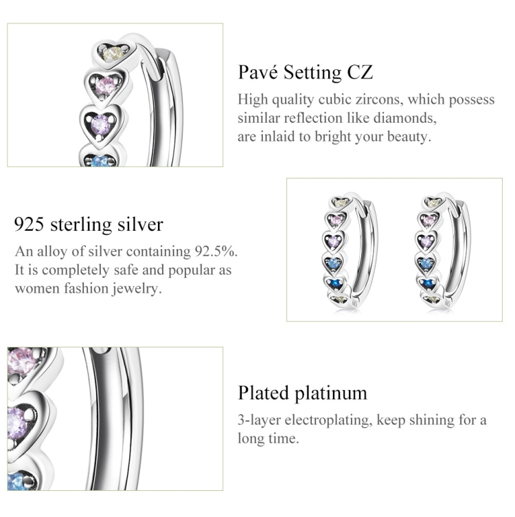 S925 Sterling Silver Rainbow Heart Ear Buckle Women Earrings