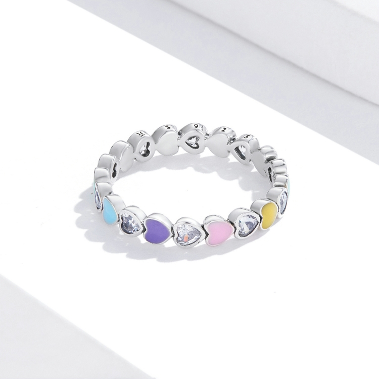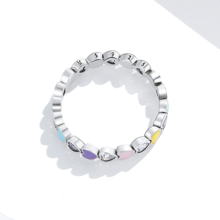S925 Sterling Silver Rainbow Heart Zircon Women Ring