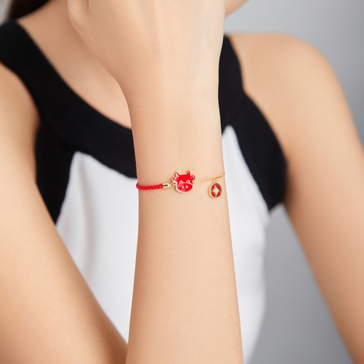 S925 Sterling Silver Red Rope Cute Cow Women Bracelet Jewelry