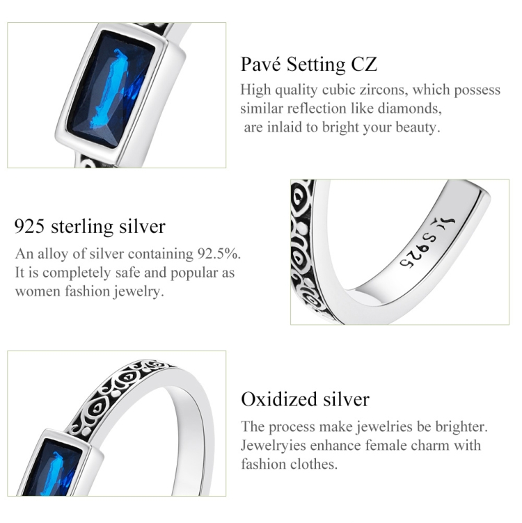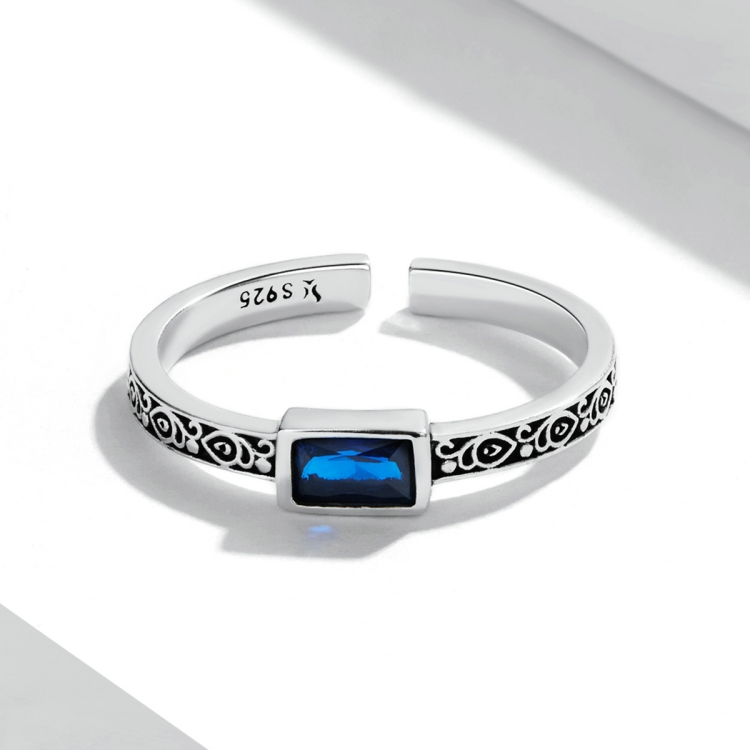 S925 Sterling Silver Retro Flower Square Zircon Women Open Ring