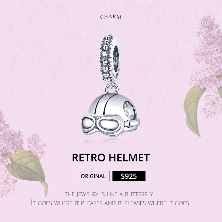 S925 Sterling Silver Retro Helmet Pendant DIY Bracelet Necklace Accessories