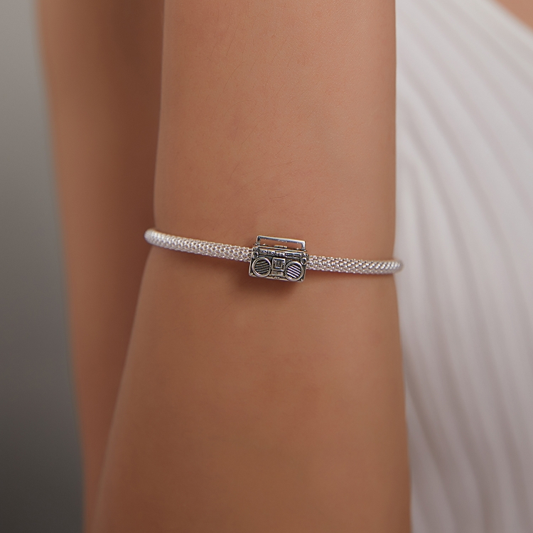 S925 Sterling Silver Retro Radio Beads DIY Bracelet Necklace Accessories