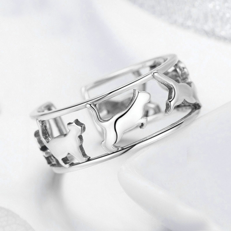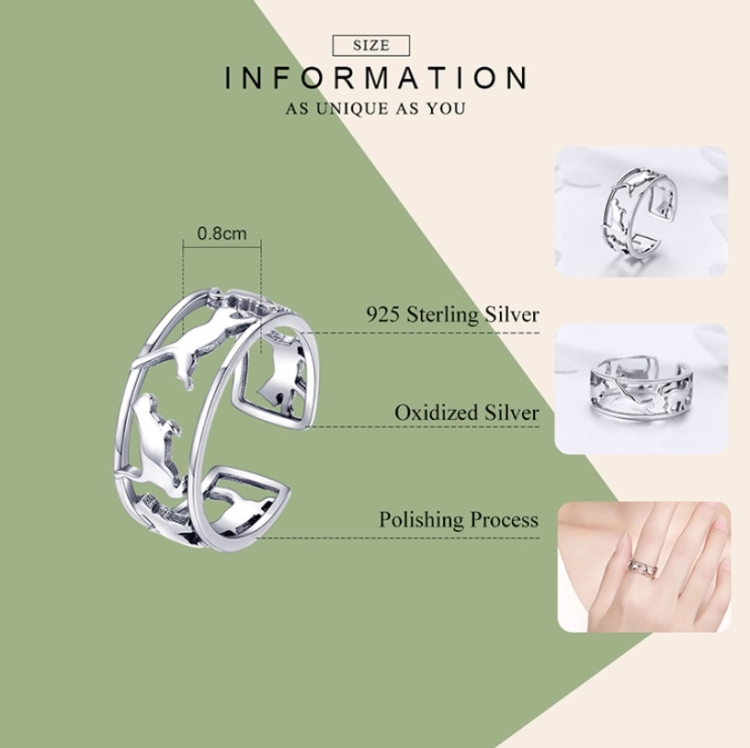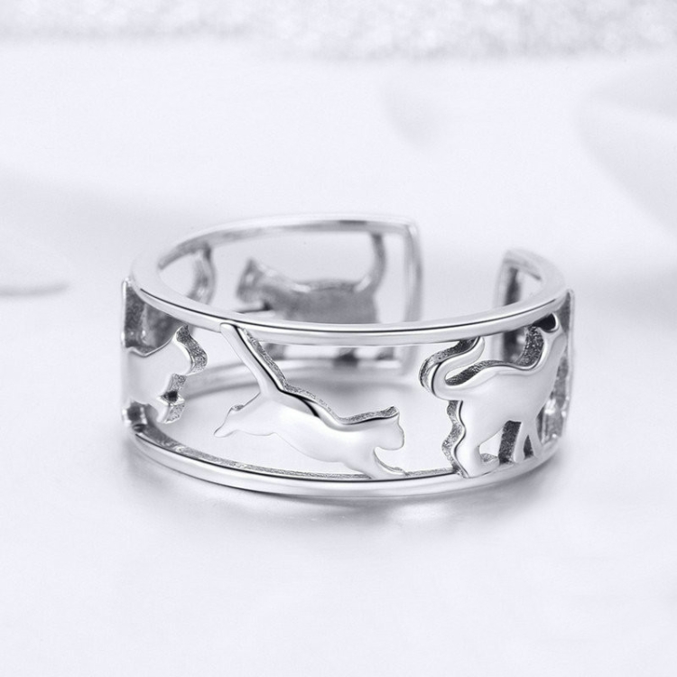 S925 Sterling Silver Ring Cute Cat Open Ring