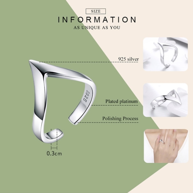S925 Sterling Silver Ring Horn Point Opening Ladies Ring